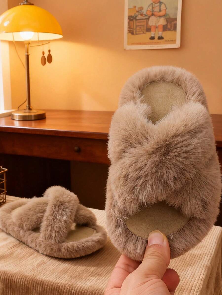 1 Pair Winter Plush Lined Slippers, Fashionable Slippers For Winter School Season, Soft & Comfortable Winter Shoes