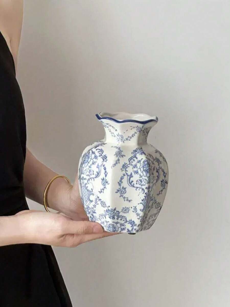 1 Pc Blue & White Porcelain Vase, New Chinese Retro Flower Vase, Living Room, Entrance, Office Floral Decor, Atmosphere Photography Prop Home Decor Room Decor Glass Vase