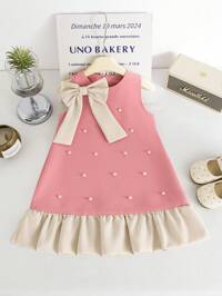 Girls (Small) Summer Wedding Season White New Dress, White Jacquard Fabric, Front Bow Decor, Patchwork Hem White Embroidered Mesh, Waist Cinched Round Neck Sleeveless Dress, Suitable For Young GirlElegant Lady-Like, Suitable For Daily, School, Outing, Holiday, Wedding Events Girls Elegant White Dress Chiffon Dress White Lace Dress Flower Girl Dress Kids Dresses For Girls Bow Tie Girls Dress Kids White Lace Dress Flower Girls White Dress Chiffon Girls Dress