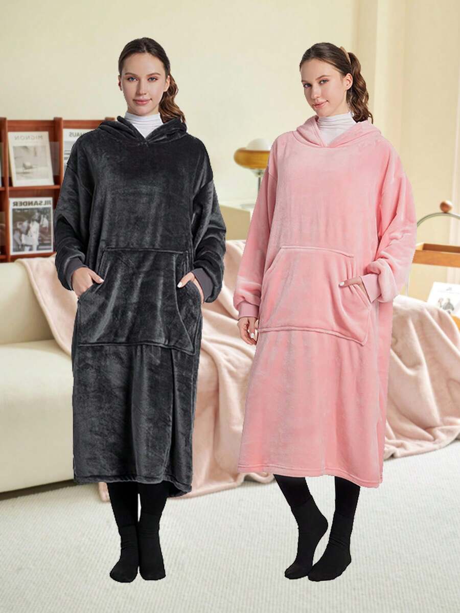 1 Sets Of Wearable Blanket Hoodie For Women And Men, Oversized Hooded Blankets Sweatshirt, Cozy And Warm Fleece Blanket With Sleeves And Giant Pocket For Adults And Kids,Cozy Hooded Blanket As A Gift Indoor & Outdoor