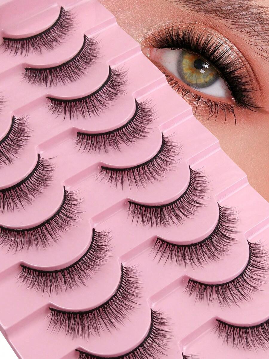Hinarin 10 Pairs Wispy False Eyelashes 9MM Natural Short Strip Lashes Crossed Fluffy 3D Faux Mink Lashes Black Band Long-Lasting Fake Eyelashes Enlarged Double Eye Portable Fake Lashes For Making Up Supply