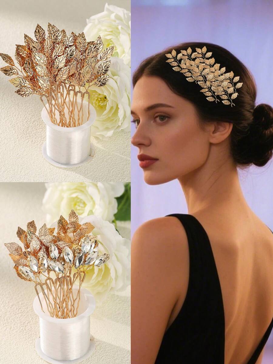 12pcs Bride Hair Accessories Vintage Gold Leaf Hair Pins Bridesmaid Headpiece For Wedding Hair Pins Bride And Bridesmaid Hairstyle Accessories