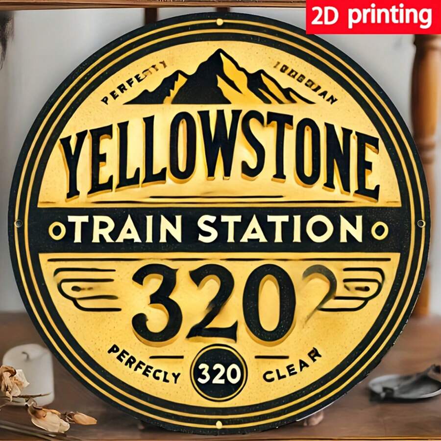 1pc 2D Flat Printing Vintage Train Station 320 Round Metal Plaque With Mountain Landscape, Vintage Style Wall Art Suitable For Club, Corridor, Bar, Cafe, Garage Decor, Metal Wall Art, Large Metal Wall Art, Bar Decor, Wall Decor, Nostalgic Design, Country Style Decor, Handmade Sign, Durable Metal, Decorative Plaque, Home Decor Enthusiasts, Vintage Collectors, Perfect For Room Decor, Random Hole Positions