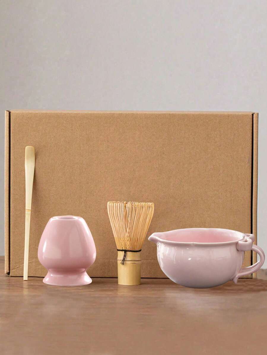 1pc/2pcs/3pcs/4pcs Pink Bow Ceramic Matcha Set, Includes Matcha Bowl, Whisk, Scoop, Stirrer, Baking Tools, Japanese Style Gift Box, Matcha Preparation Tools Set, Great Gift For Friends