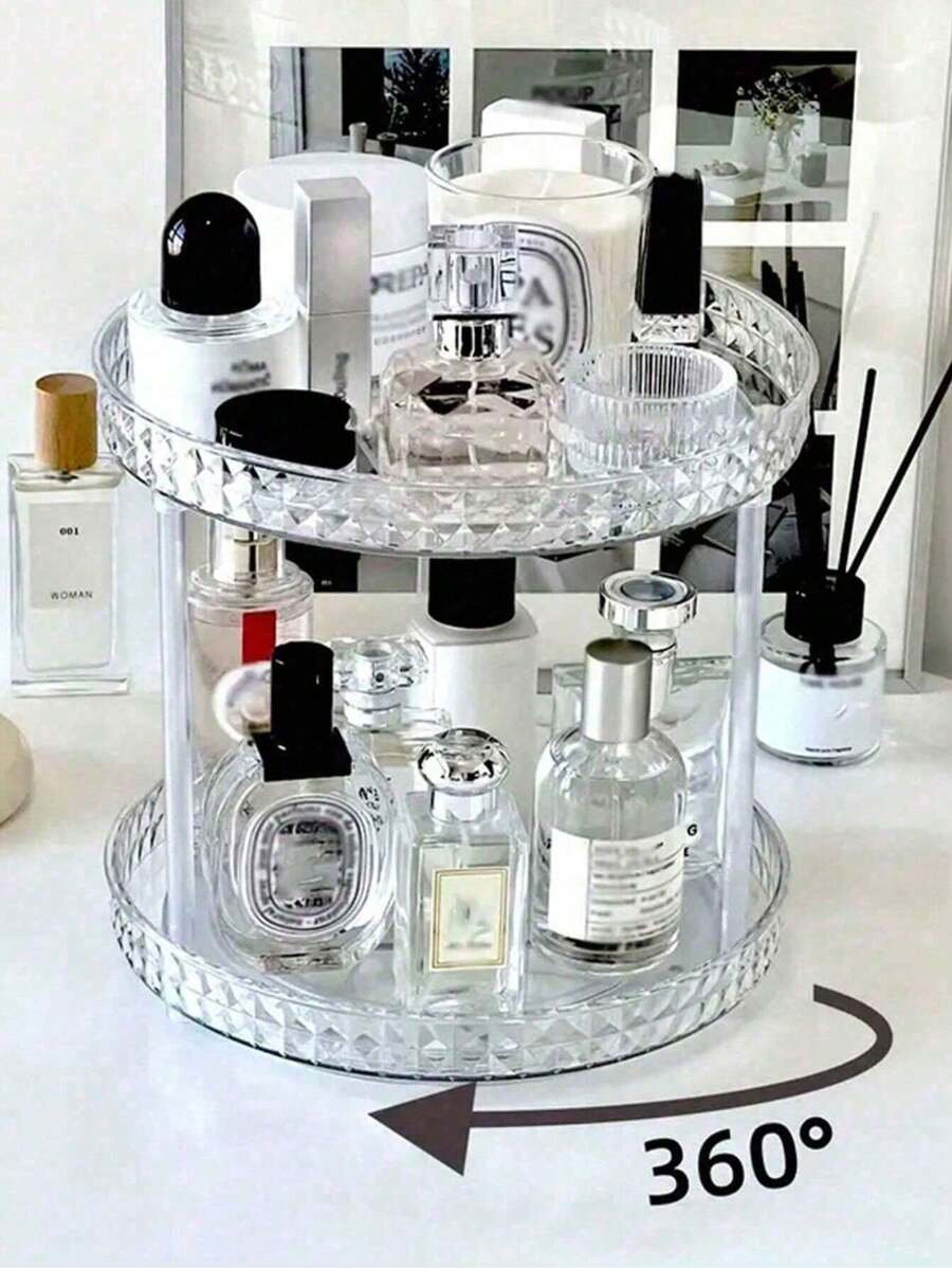 1pc Crystal Rotating Storage Organizer, Multi-Functional Rotating Makeup Rack, Transparent Rotating Rack, Makeup Storage Rack, Multi-Layer Skin Care Products Display Shelf, Merchandise Display Rack, Vanity Organizer, Rotating Bathroom Makeup Storage Rack, Counter Display Rack, Makeup, Perfume And Skincare Storage Rack, Vanity Tray, 360° Rotating Makeup Storage Box Summer Travel, Vacation Home Bathroom Decor Makeup Organizer Bathroom Accessories Back To School