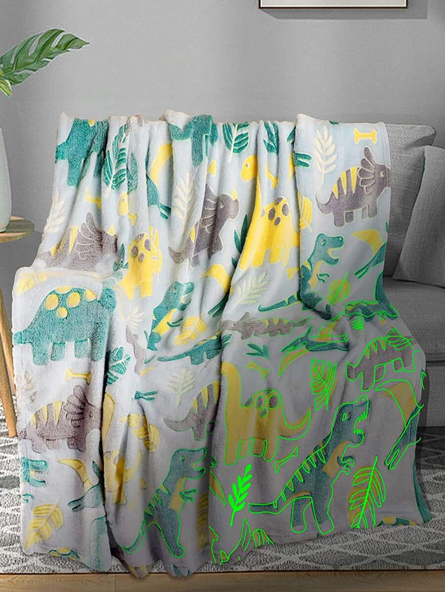 1pc Lovely Glow-In-The-Dark Flannel Blanket, Popular Autumn/Winter Item, Beautiful Dinosaur Pattern Personalized Blanket, Soft Plush Throw Glows In The Dark, Unique Dinosaur Gift