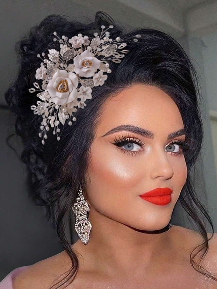 1pc Luxury Elegant Silver Alloy Leaf Bridal Hair Comb Headpiece, Suitable For Wedding, Party, Fairy-Like Hairstyle Decoration Valentine's Day Accessories