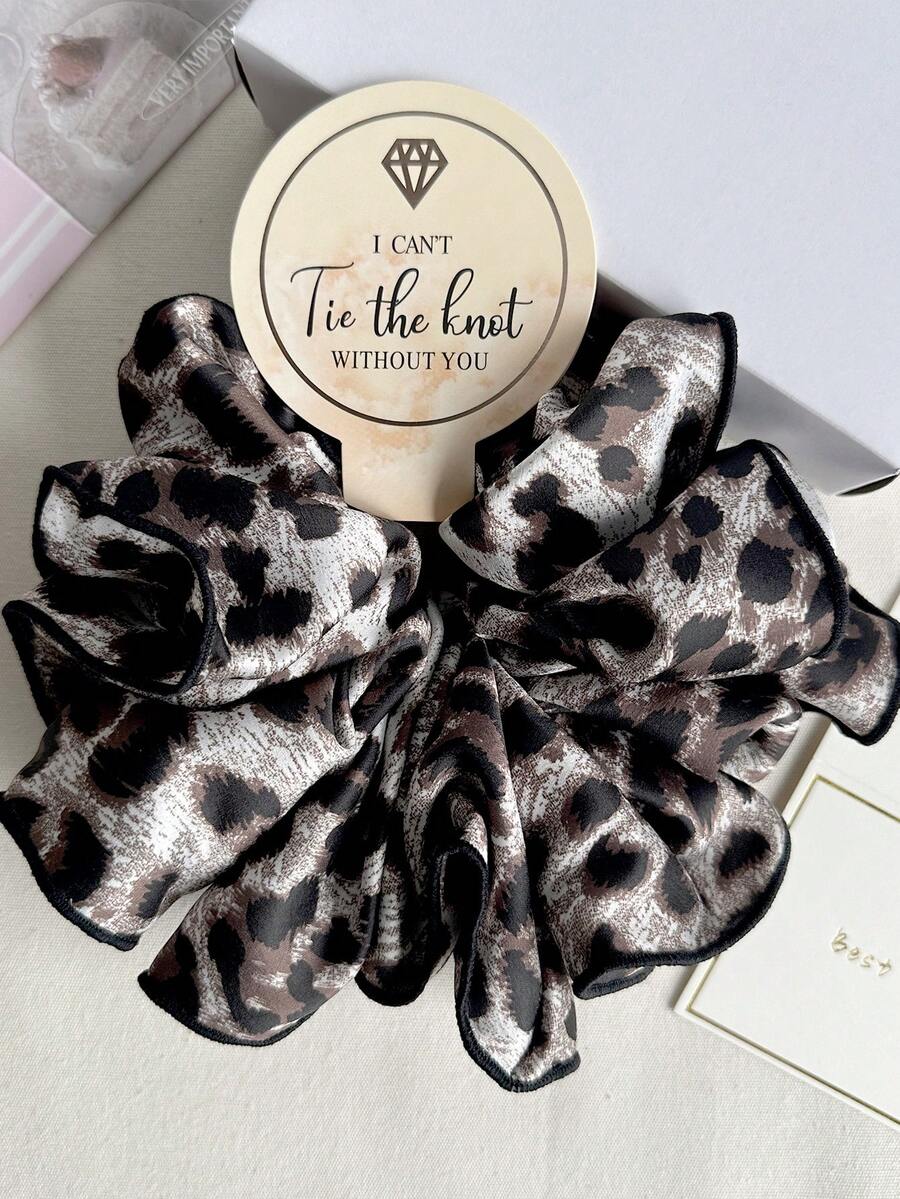1pc Satin Soft Scrunchie With Card Slot, Extra Large Leopard Print Ruffle Elastic Hair Ties, Suitable For Bachelorette Party/Holiday/Wedding/Bridesmaid Gift, Women Damage-Free Hair Ties, Scrunchy Hair Ties, Bathing Makeup, Washing Face, Hair Accessories Ponytail Head Accessories Elastic Band