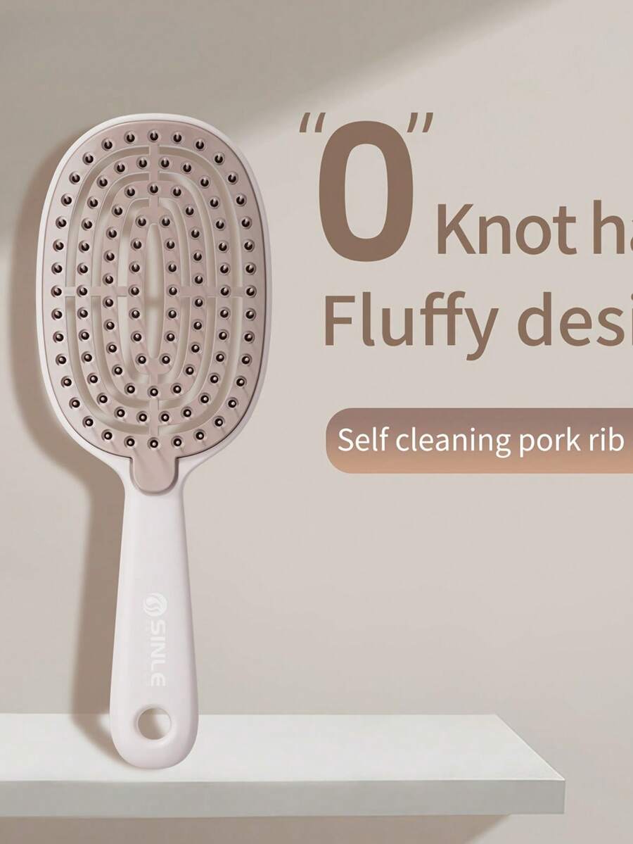 1pc Self-Cleaning Cushion Massage Comb - Ergonomic Handle, Gently Detangles Regular Hair, Increases Volume And Shine, Ideal For Home Use, Hair Care Tool, Fashionable Design, Durable Plastic Material, Bone Comb, Coral Color Ladies Comb, Volumizing Hair Brush, Foldable Hair Brush, Women's Comb, Large Comb, High-Top Comb, Women's Comb