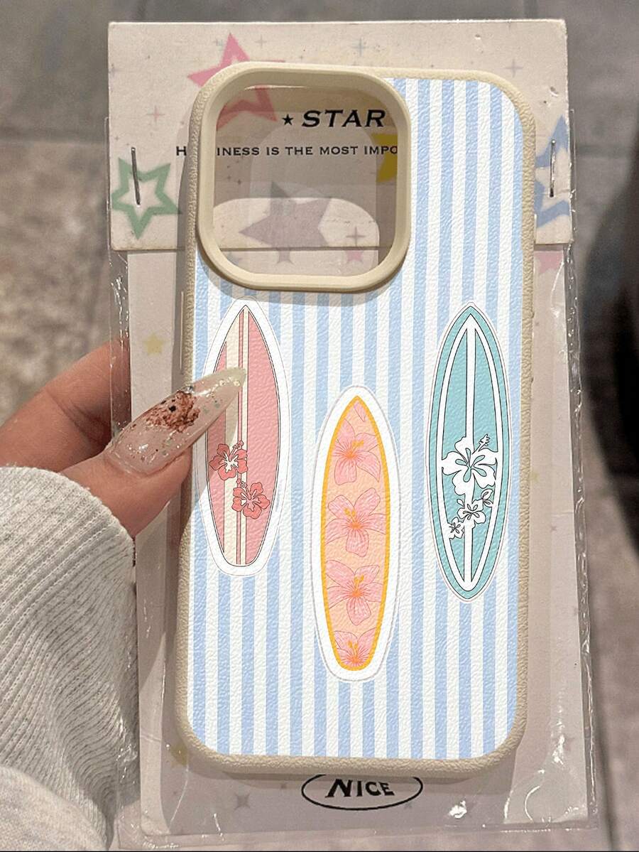 1pc Summer Limited Edition 3 Surfboards Blue Striped Litchi Texture Soft TPU Waterproof Anti-Fall Anti-Slip Phone Case Compatible With Apple// Phones