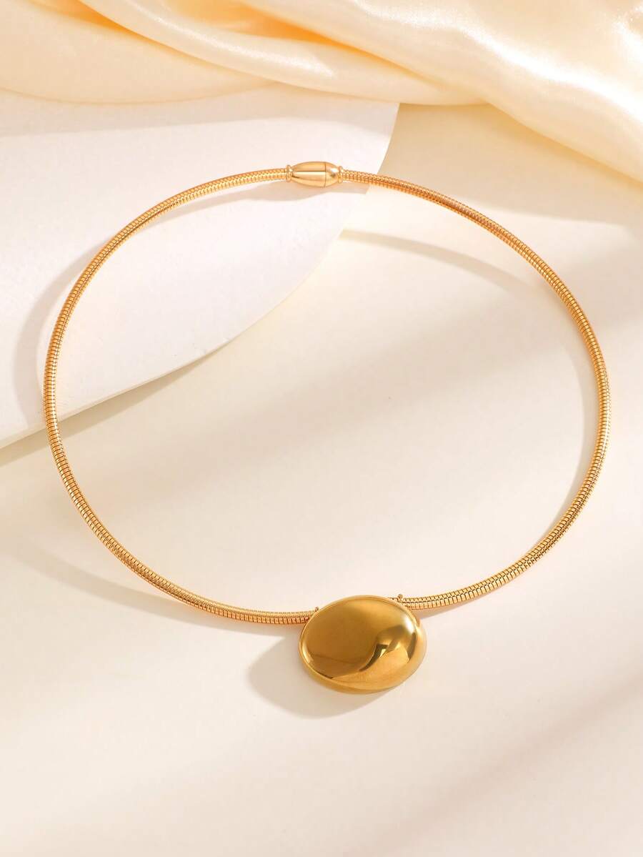 1pc Vintage Gold Stainless Steel Snake Bone Chain Curved Oval Necklaces For Women,Stainlees Steel Jewelry, Ideal For Daily Casual Valentine's Day, Vacation, Festival Wear, Gifts For Women, Jewelry Women, Best Friend Gifts Women