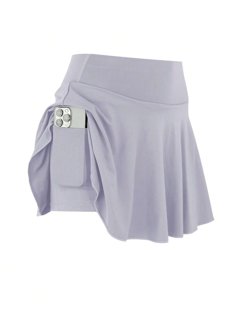 1pc Women Plus Size Sports Skirt, High Waist Workout Running Tennis Skirt, Casual Fashion Pocket Decor Skort