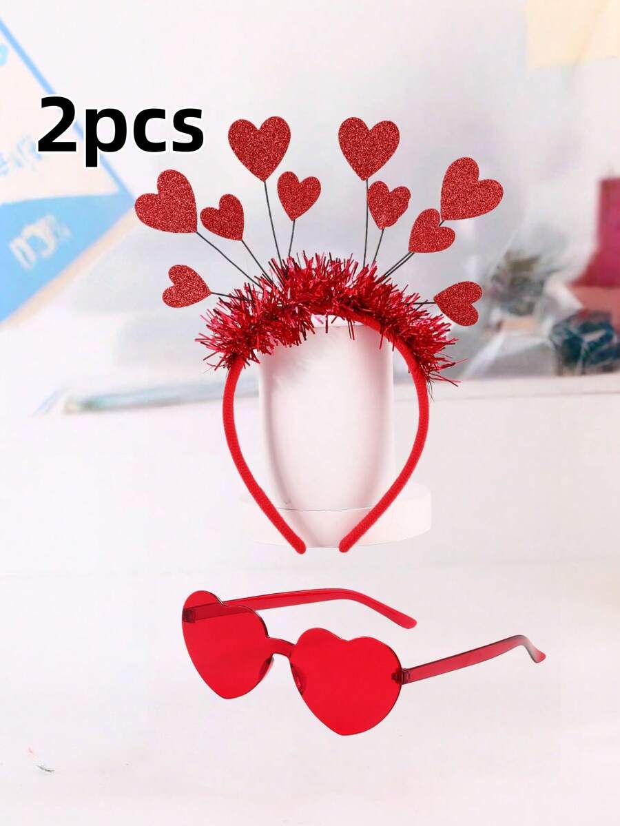 2 Pieces Set Of High-Quality Valentine's Day Headbands, Heart-Shaped Hair Hoops, Wedding Atmosphere Decorations, Valentine's Day Party Supplies, Bride/Maid Of Honor Hair Accessories. New Year Party Gifts