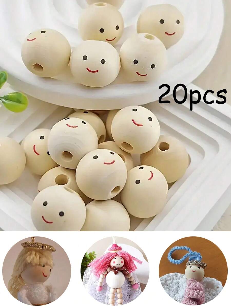 20pcs Smiling Face Wooden Beads Round Expression Loose Beads For Jewelry Making DIY Creative Hand String, Necklace Other Hanging Decors Beaded Craft Supplies