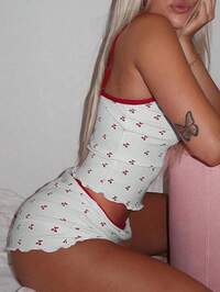 2pcs Pajama Set, Women's Sexy Camisole & Shorts, All-Over Print, Heart Decor, Casual Summer Sleepwear, Summer Outfit, Cute Pajama Top, 2pcs Set, Homewear, Back To School, Outfit, Christmas #1 Bestseller