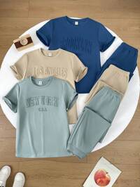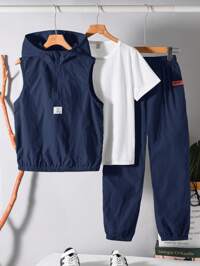 Buy 2 Get 1 Free, 3pcs/Set Tween Boy Casual Hoodie Vest And Elastic Waist Pants Set With Bonus T-Shirt, Comfortable, Versatile, Suitable For Autumn, Spring, Summer, Daily Wear, Outdoor, School, Street, Party, And Leisure, Boys Casual Set, Boys Navy Blue Outfit Set #10 Bestseller