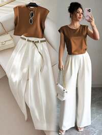 in Plain Women Two-piece Outfits