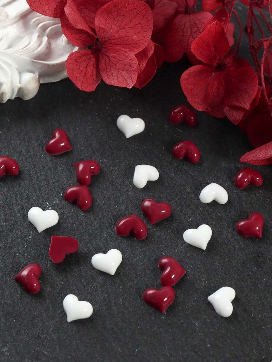50pcs Cute Mini Heart Nail Art Decorations, Sweet & Adorable, White & Cherry Red Mixed Nail Art Accessories, Suitable For DIY Ladies Nail Salon Design Decor, 5mm Nail Gems