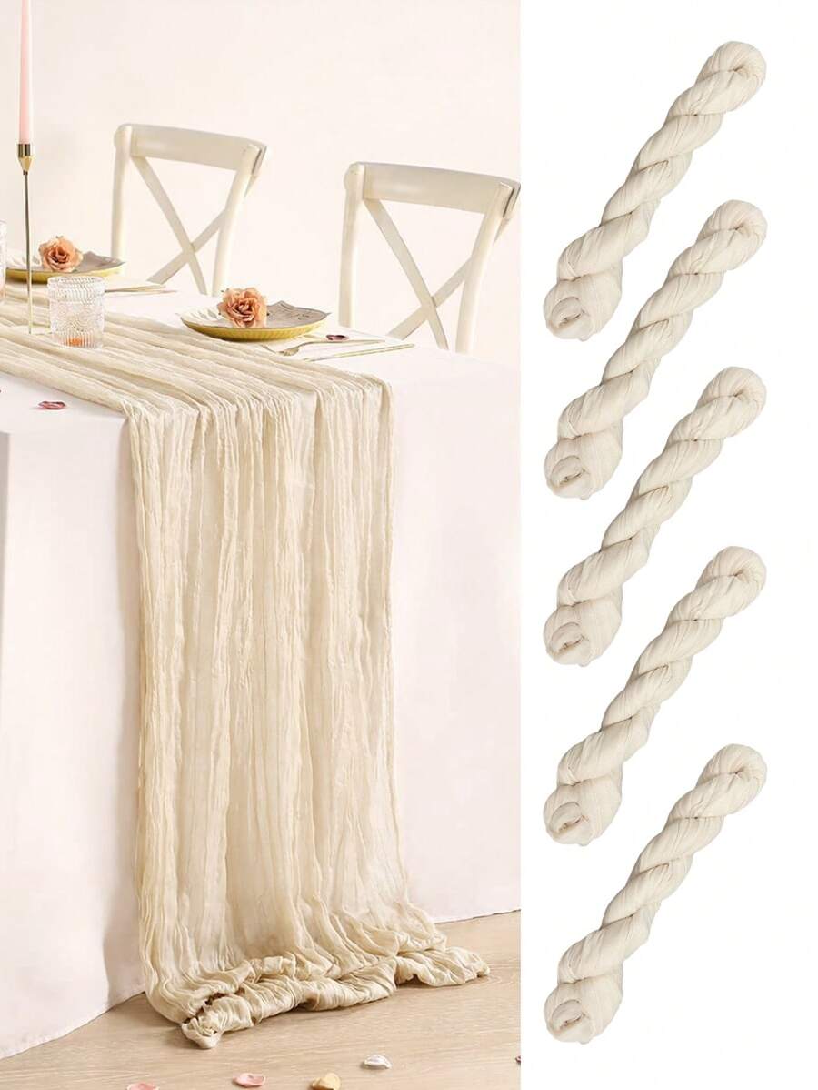 5pcs Beige Pleated Table Runner, Folded Tablecloth, Holiday Birthday Decorations Wedding Decorations Vacation House Decorations Party Room Table Decorations Beige Table Cover, Table Flag, Solid Color Table Cloth, Birthday Decorations Wedding Decorations Table Set, Party Decorations Table Skirt, Party Favors, Christmas Decoration, Christmas Table Runner, Christmas Decoration, Halloween Decoration