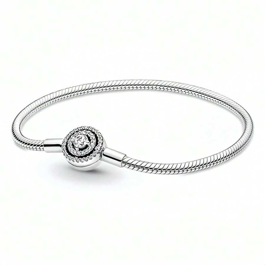 Elegant Sterling Silver Star Zirconia Snake Bone Chain, Suitable For DIY Bracelet, Fashion Jewelry Gift For Women Basic Chain