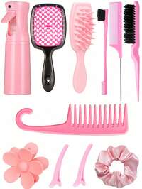 11pcs/Set Multi-Functional Hair Styling Tool Kit, Black Handle Hollow Comb Massage Scalp Relax Anti-Hair Loss, 200ml High Pressure Spray Bottle, Dense Teeth Curling Comb Detangle Hair, Large Hair Scrunchies For Ponytail, Elegant Hair Accessory Set Suitable For All Hair Types & Women, Great Gift For Girlfriend/Family ,Hair Styling Kit ,Hair Tool Kit ,Hair Styling Tools For Barber Salon Beauty Travel Essential Hair Products,Hair Cares,Hair Accessories #8 Bestseller