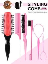 Hair Brush Set For Women Curly Wet Or Dry, Teasing Hair Brush, Rat Tail Comb, Edge Brush For Edge & Back Combing, Parting Styling, Ponytail Pull Through Tools Hair Loop Styling Tools In Large And Small, New Edition Nine-Row Comb, Special Teeth-The Side Teeth Design Of The Curling Brush Separates Curls Effortlessly, Smooth Detangling For All Hair Types-Glides Through Wet Or Dry Hair, Without Pulling Or Breaking Strands ,Hair Styling Kit ,Hair Tool For Barber Salon Beauty Travel Essential,Hair Products,Hair Cares,Hair Styling Set Hair Accessories 4pcs/Set Classic Faux Wood Grain Anti-Static Plastic Hair Comb Set, Suitable For Daily Use, Wedding Party Favor/Bridesmaids Gift,Combs With Wooden Grain,Wide Tooth Comb,Rat Tail Comb,Beard Combs,Fine Tooth Professional Hair Comb Set For Women,Men Barber Styling/Curly/Teasing/Parting/Mustache,Detangling Hair Brush,Halloween/Christmas Accessories Gifts ,Hair Styling Tools