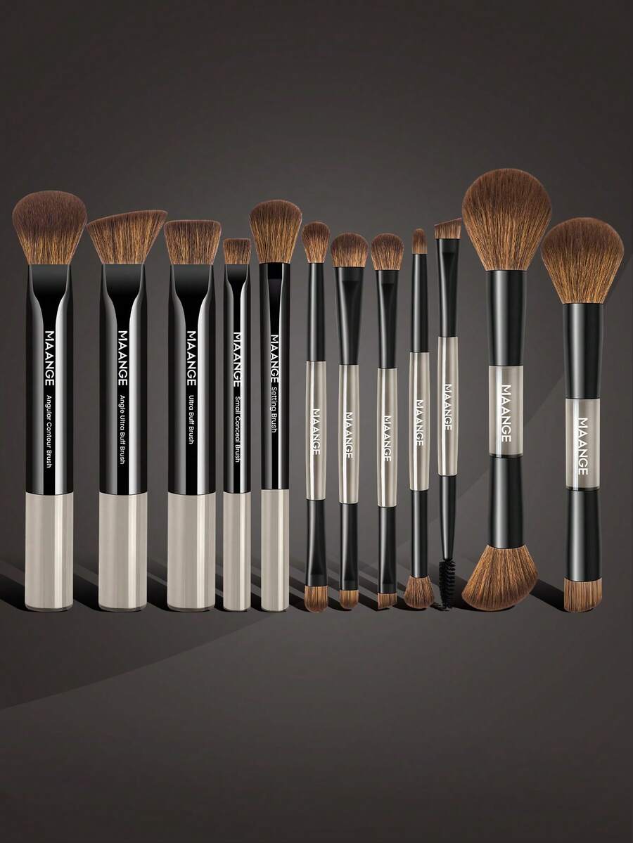 MAANGE 12pcs Professional Dual-Ended Makeup Brush Set, Including Angled Foundation Brush, Contour Brush, Blush Brush, Powder Brush, Eyeshadow Brush, Eyeliner Brush, Eyebrow Brush, Concealer Brush, Highlighter Brush And Blending Brush, Soft Bristles, Portable Travel Set, Gift For Women And Girls