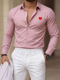 Manfinity Mode Men's Summer Heart Embroidery Front Button Casual Long Sleeve Shirt,Men Old Money,Daily Leisure, Weekend Trips, Outdoor Activities, Travel Expeditions, Relaxed Work Environments Or Semi-Formal Occasions, Boyfriend/Husband Gift, Anniversary /Birthday Gift Party Summer Vacation Holiday,Wedding,Spring To Summer,Easter,Men's Pink Long Sleeve Collared Shirt With Red Heart Detail,Men Pink Dress Shirt,Business Casual Tops Men,Pink Shirt Men's,Men S Pink Shirt,Pink Button Up Shirt