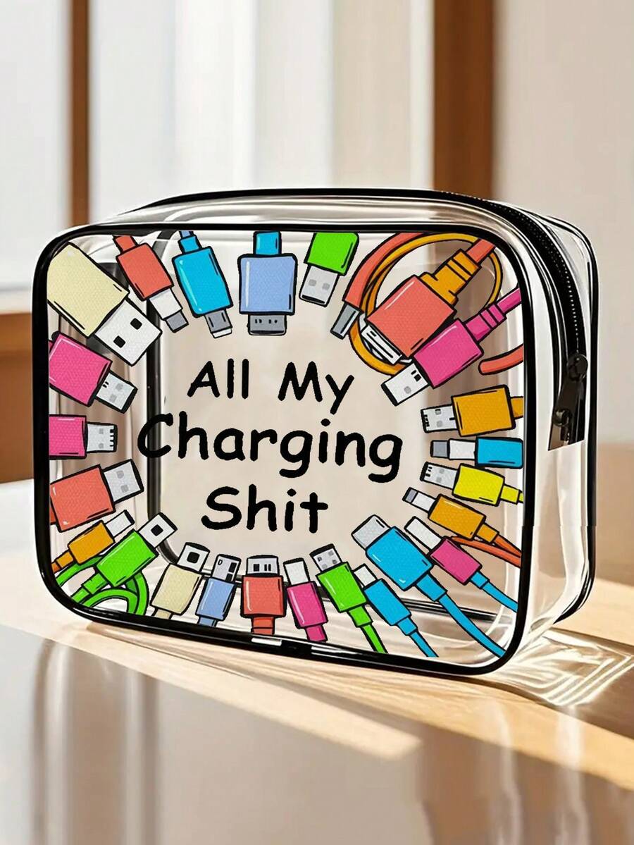New Arrival! All-In-One Charger Travel Organizer - Transparent Toiletry Bag, Travel Essential, Portable Zipper Travel Makeup Bag, Beach Clear PVC Toiletry Bag, Waterproof Storage Pouch, Transparent Organizer Bag, Cable And USB Organizer Bag, Airport Approved PVC Cosmetic Bag For Chargers, Cables And Power Banks
