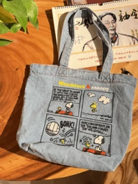 FLASHOMELight Blue Denim Shoulder Bag, Adorable 4-Grid Cartoon Print, Vintage Denim Fabric, Versatile Design, Convenient Shoulder Carry, Suitable For Daily Use, Travel, Commuting, Leisure, Suitable For Teenagers, Students, Office Workers, Also A Thoughtful Gift For Friends/Loved Ones #1 Bestseller