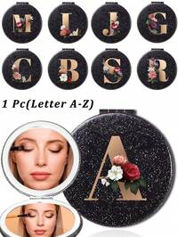 1pc Foldable Makeup Mirror With Stand, A-Z Letter Design, Portable Travel Mirror, Beauty Accessory, Tabletop Vanity Mirror, Solid Color PU Leather Minimalist Style Compact Rectangular Makeup Mirror, Travel Essential, Dorm Necessity, Women/Girls Gift, Easy Storage, Ideal For Christmas, Birthday, Graduation, Boho Style#4 Bestseller