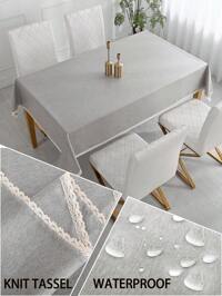 1pc Boho Style Solid Color Tablecloth, Khaki Striped Woven Table Runner With Tassels, Rectangular Kitchen Decor Dining Table Cloth, Suitable For Outdoor Wedding, Solid Color Photography Backdrop, Daily, Festival, Birthday Party, Home Decor, New Home Essential, All Season
