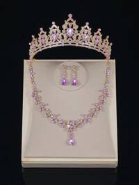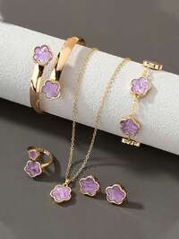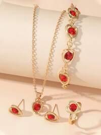 5pcs Heart-Shaped Alloy Diamond Jewelry Set, Including Necklaces, Bracelets, Rings, Earrings, Suitable For Girls To Wear, Simple And Elegant Design, Suitable For Daily Wear Or Gift Giving, Thanksgiving, Back To School, Graduation Season #3 Bestseller