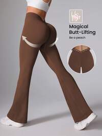 Easithlete Easithlete Women's New Two-Piece Deep Coffee-Colored Loose Flared Pants With Pleats At The Back And V-Shaped Waist, Sexy And Charming Long Pants, Seamless Knitted High-Waisted Lifting Buttocks Yoga Pants, Sports Compression Soft Elastic Tight And Breathable. Long Sports Pants With A Slim Fit Shape, Suitable For Running, Cycling, Fitness, Outdoor Sports, Training. Thick Short Pants, Fashionable Peach-Shaped Buttocks With Slightly Flared Hem, Suitable For Spring And Summer As Well As All Seasons, Best-Selling Style. #7 Bestseller