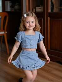 in Plain Young Girls Denim Two-piece Outfits