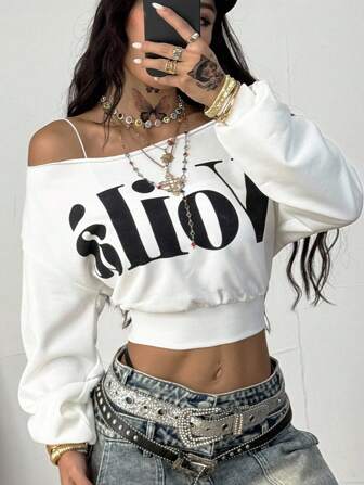 Resyla Women's Logo Print Graphic Loose Casual Contrast Block Color Strip Round Neck T-Shirt Top